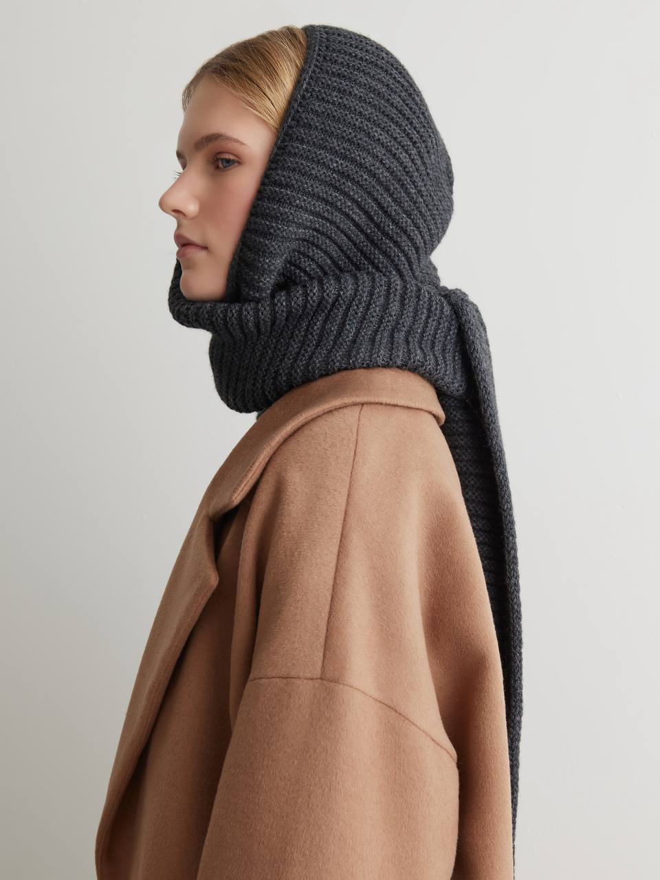 Капюшон-шарф из шерсти с добавлением акрила.