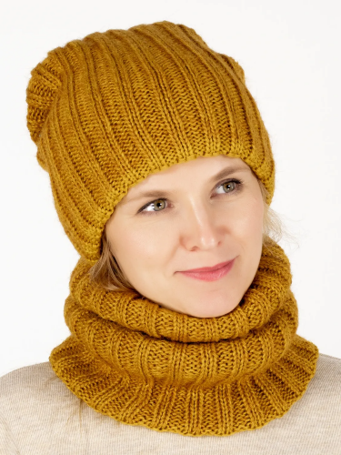 Комплект зимний женский шапка+снуд Жасмин (Цвет охра), размер 56-58, шерсть 50%, мохер 30%