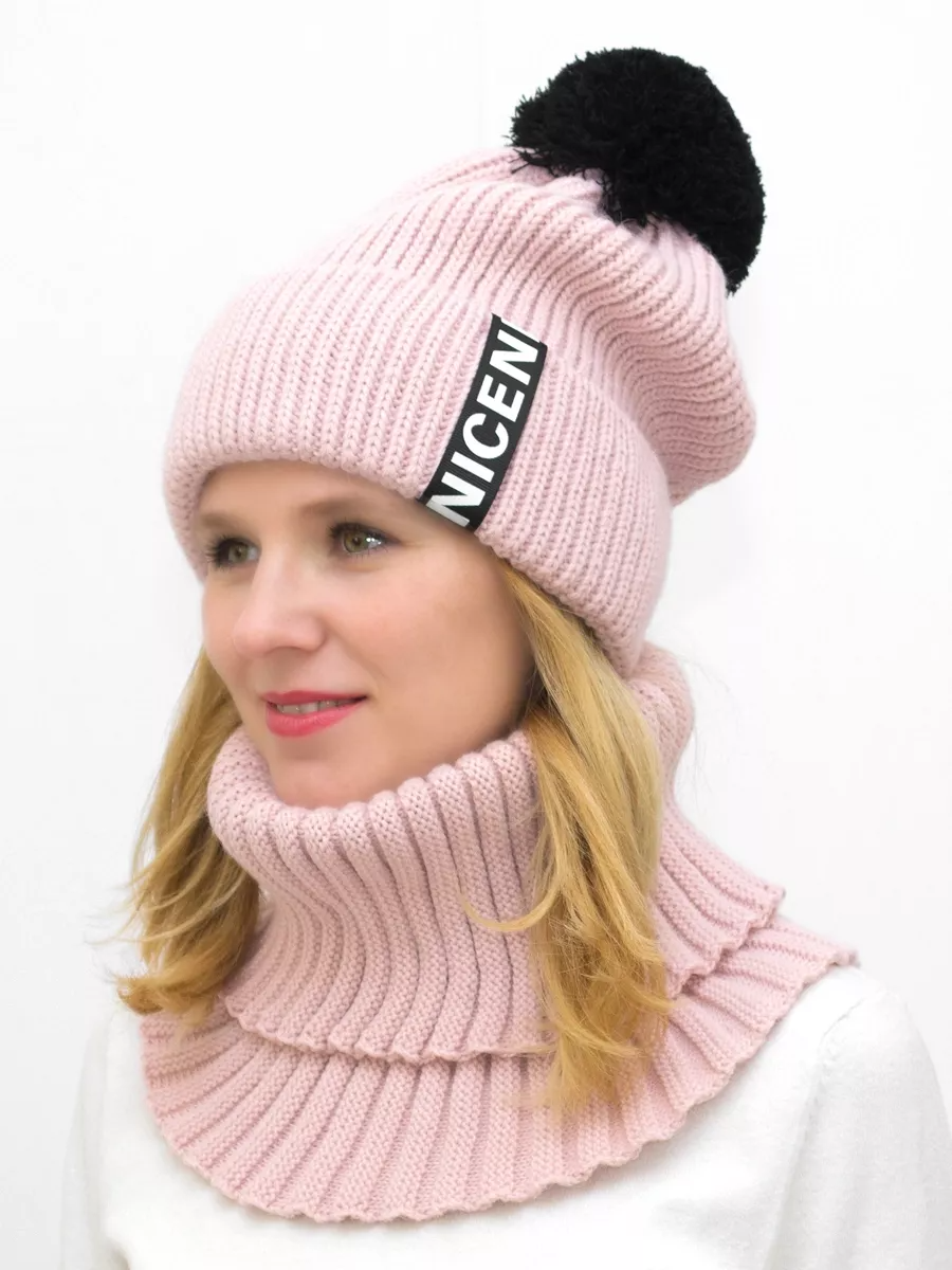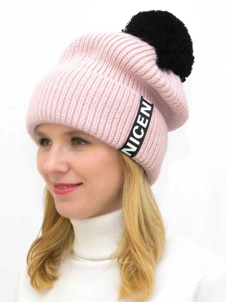 Шапка женская зимняя Айс (Цвет пудровый), размер 56-58, шерсть 30%