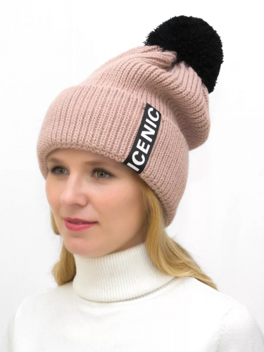 Шапка зимняя женская Айс (Цвет бежевый), размер 56-58, шерсть 30%