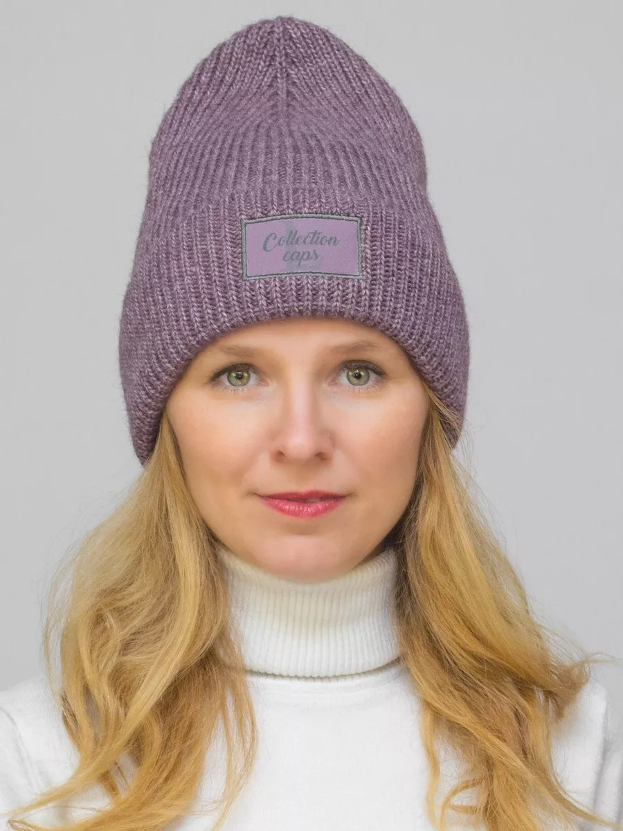 Шапка зимняя женская L-Collection (Цвет темно-сиреневый), размер 56-58, шерсть 30%