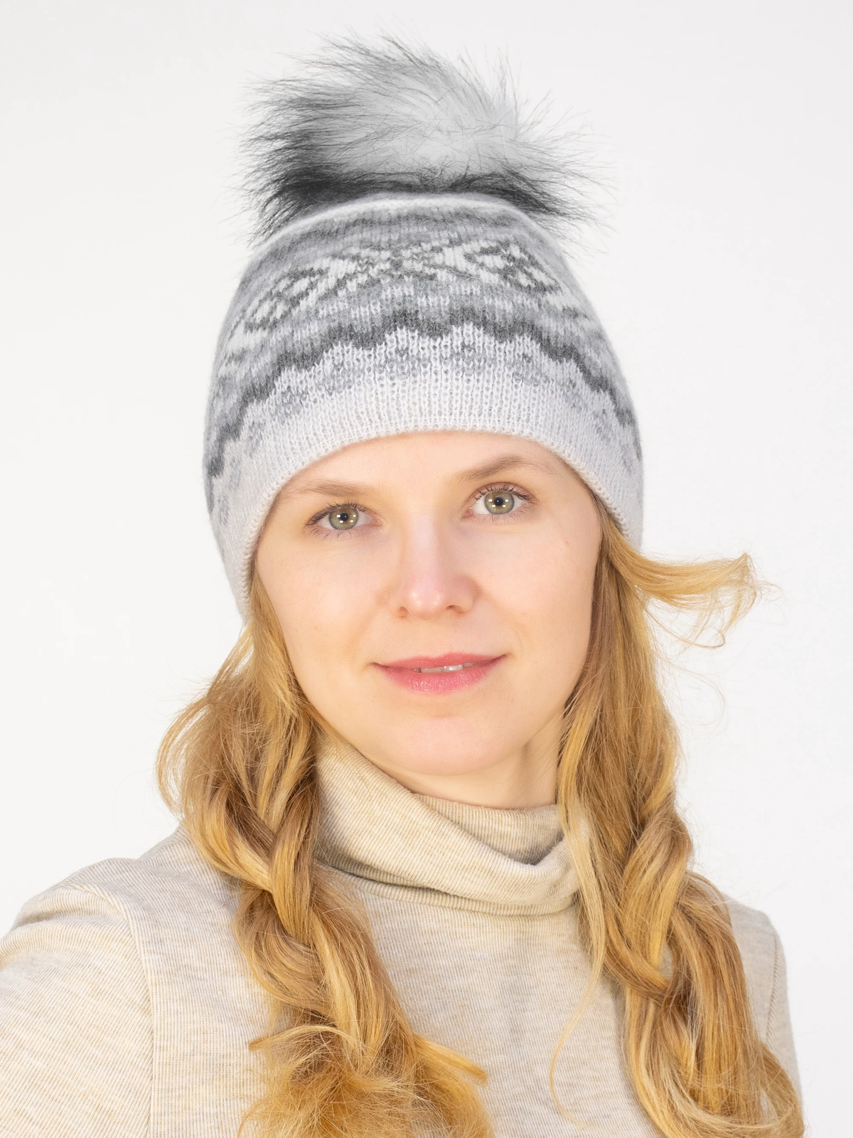 Шапка зимняя женская Марселан (Цвет светло-серый), размер 54-56, шерсть 70%