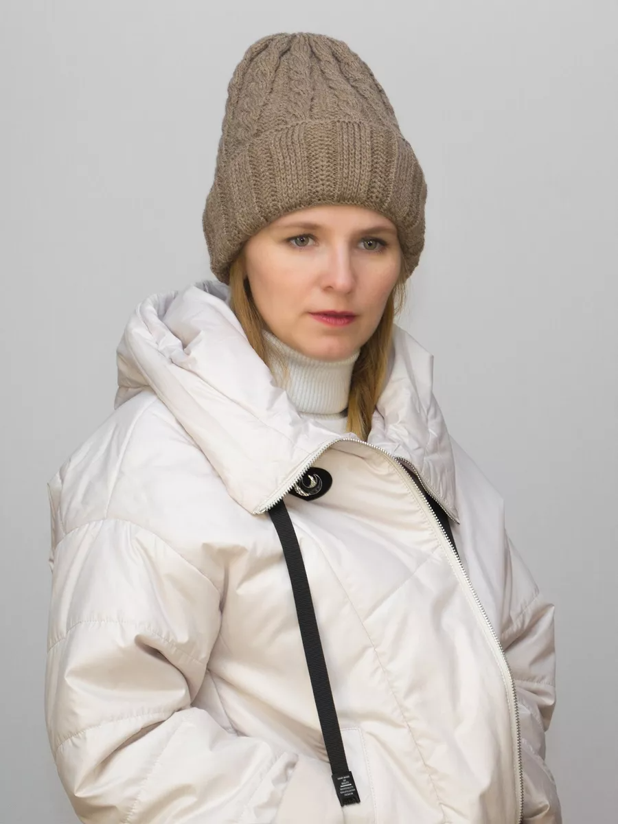 Шапка зимняя женская Марта (Цвет песочный), размер 56-58, шерсть 30%