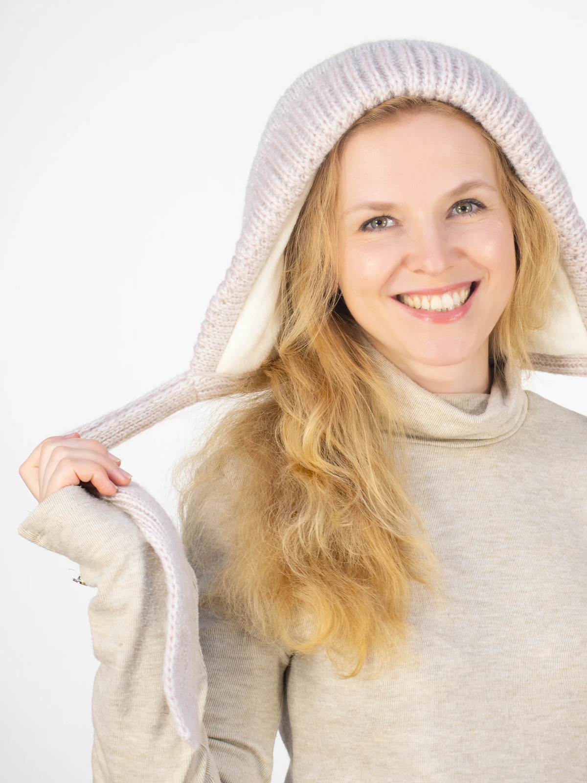 Шапка зимняя женская с завязками Крета (Цвет пудровый).