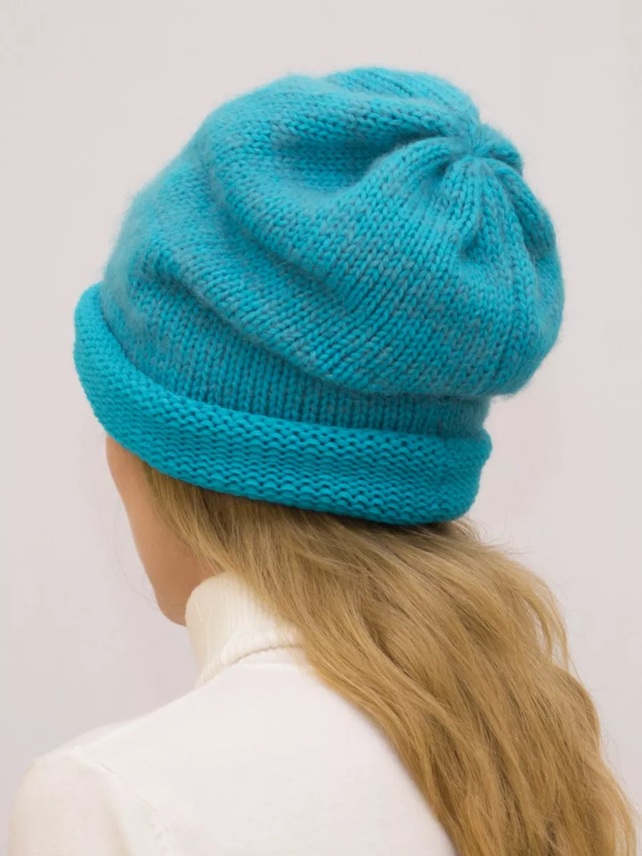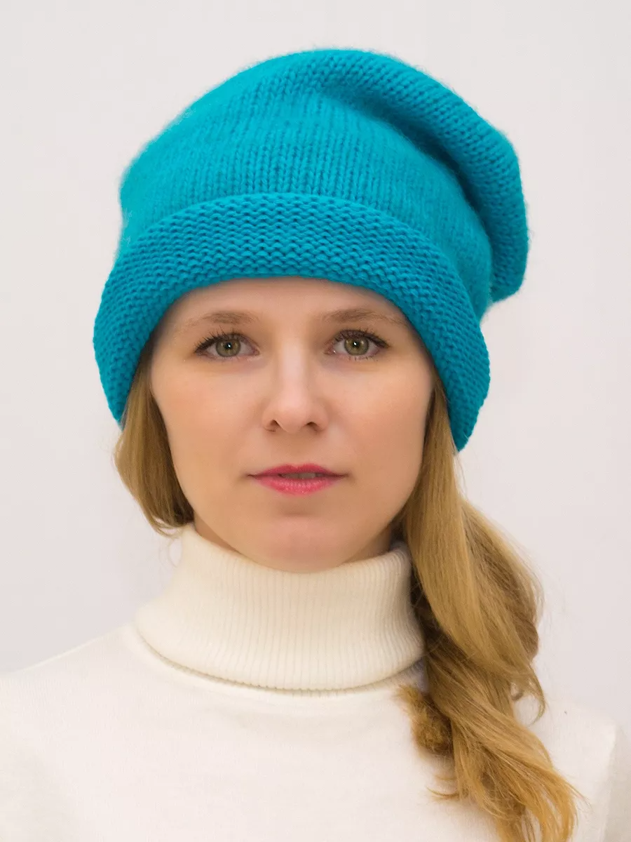 Шапка зимняя женская Василиса (Цвет бирюзовый), размер 56-58, мохер 50%