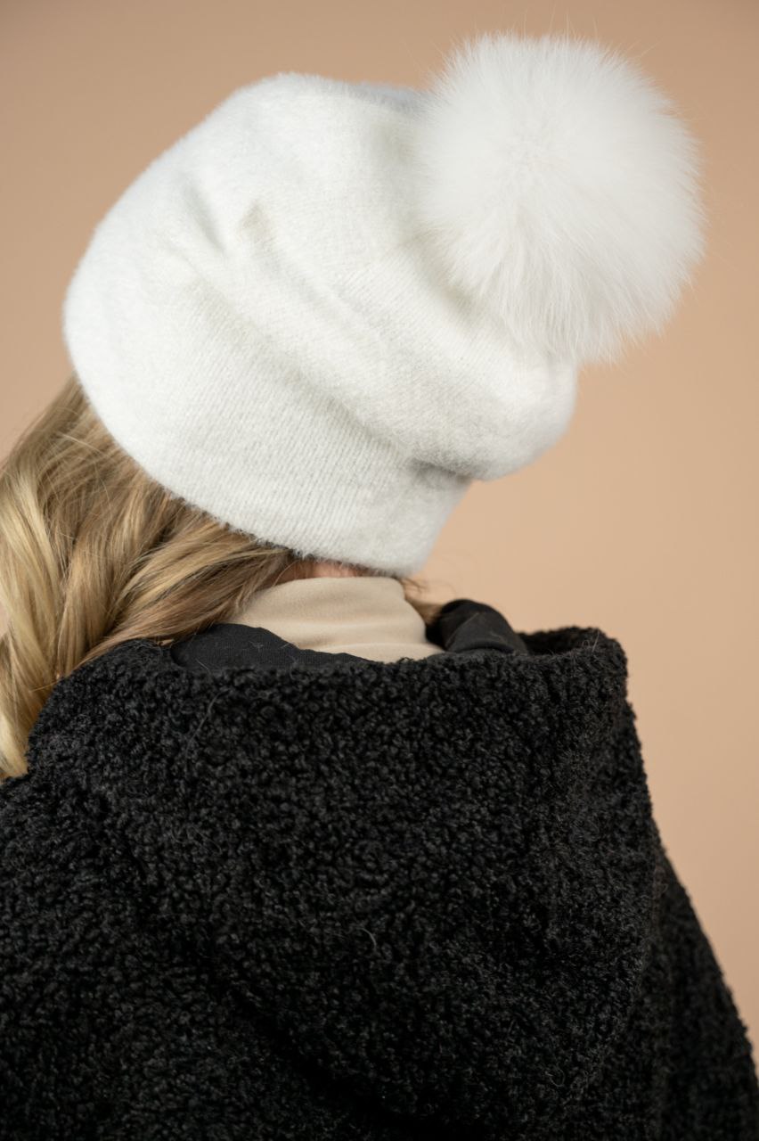 Состав: ангора 60%, акрил 40%, подкладка-флис, мех песца