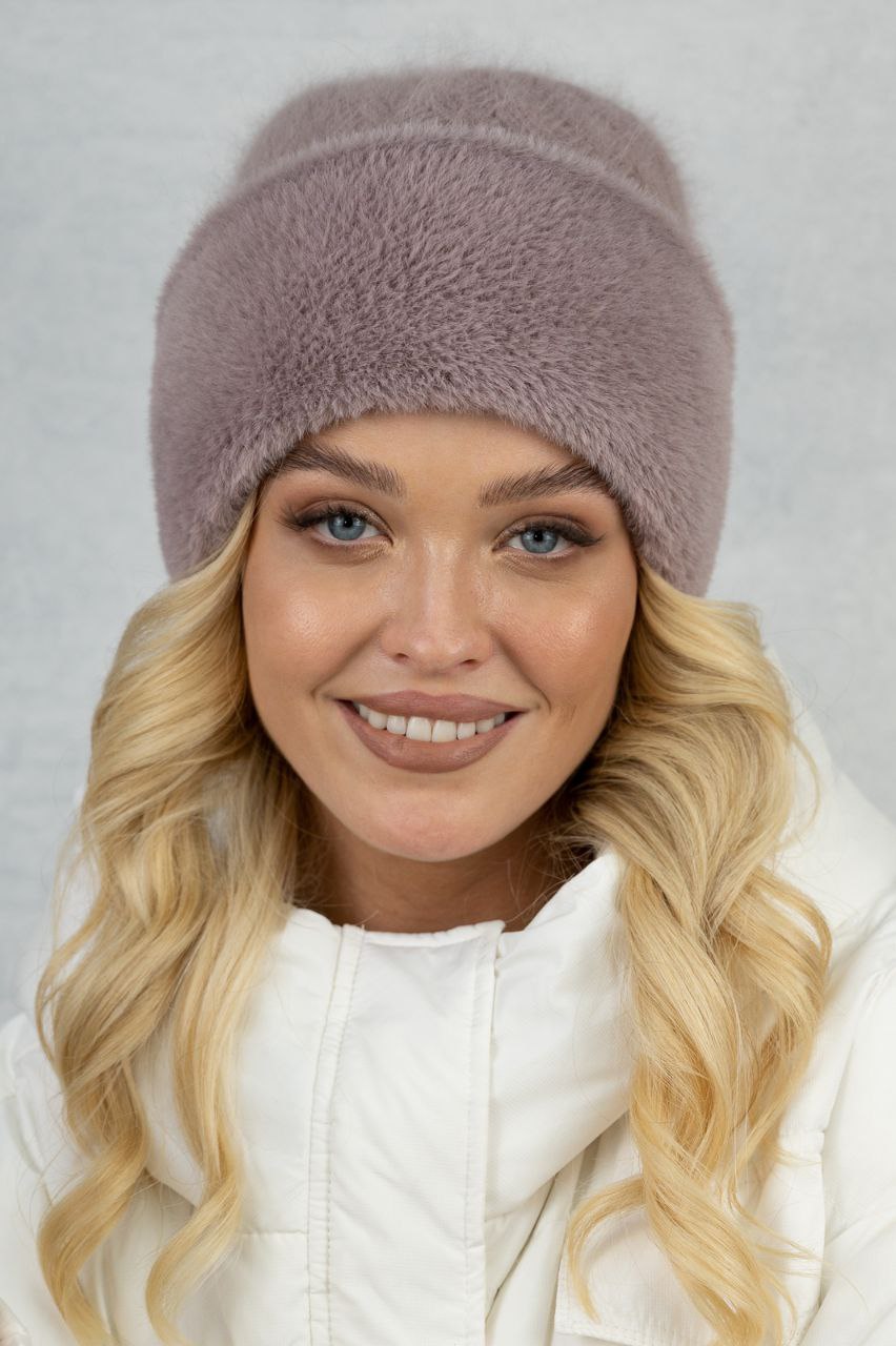 Женская шапка с отворотом из эко-меха