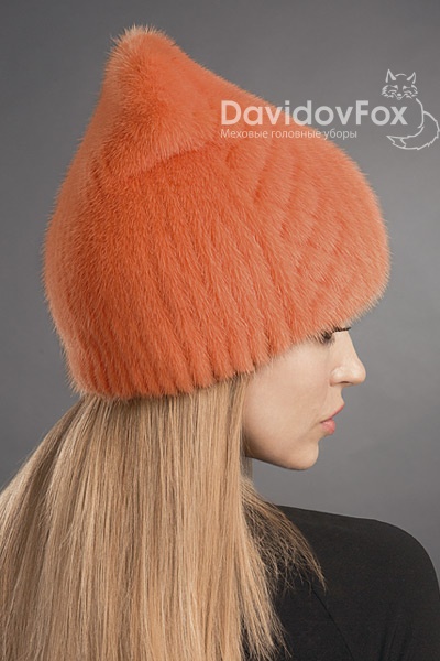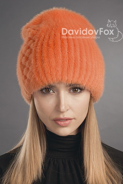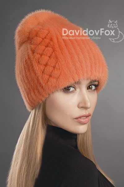 Шапка женская Бини норка орнамент оранж