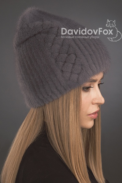 Шапка женская Бини норка орнамент серо-голубая