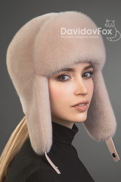 Шапка женская Ушанка норка дымчатая роза