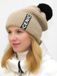 Шапка зимняя женская Кэмерон (Цвет пудровый), размер 56-58; 58-60, шерсть 30%