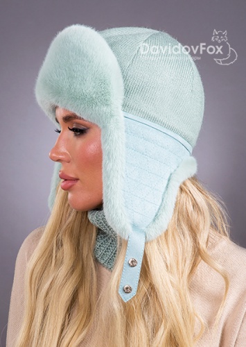 Ушанка трикотаж экомех мята