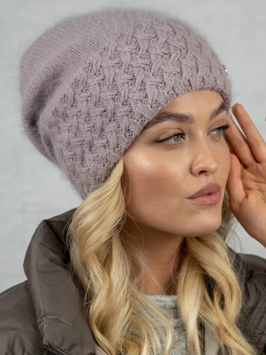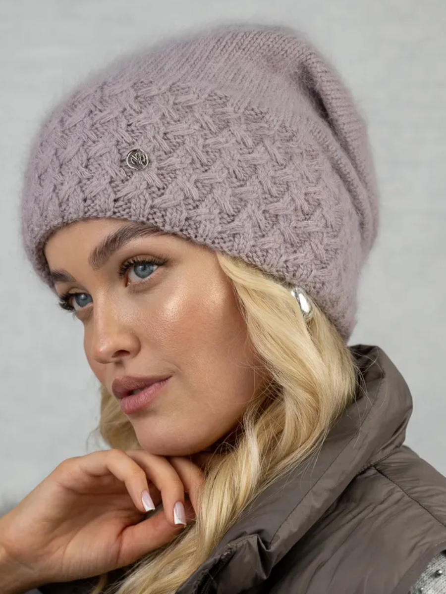 Шапочка вязаная из ангоры - то, что нужно в новом сезоне. Двойная, теплая, до -25-30С, очень мягкая. До половины вязка "корзиночка", сзади выполнена в виде конвертика. Без отворота, с мулькой NF спереди. Внутри подклад из полушерсти, не колется. Высота - 22,5 см, глубина - 21 см. Состав: 70% ангора, 20% шерсть мериноса, 10% акрил, размер 56-58.