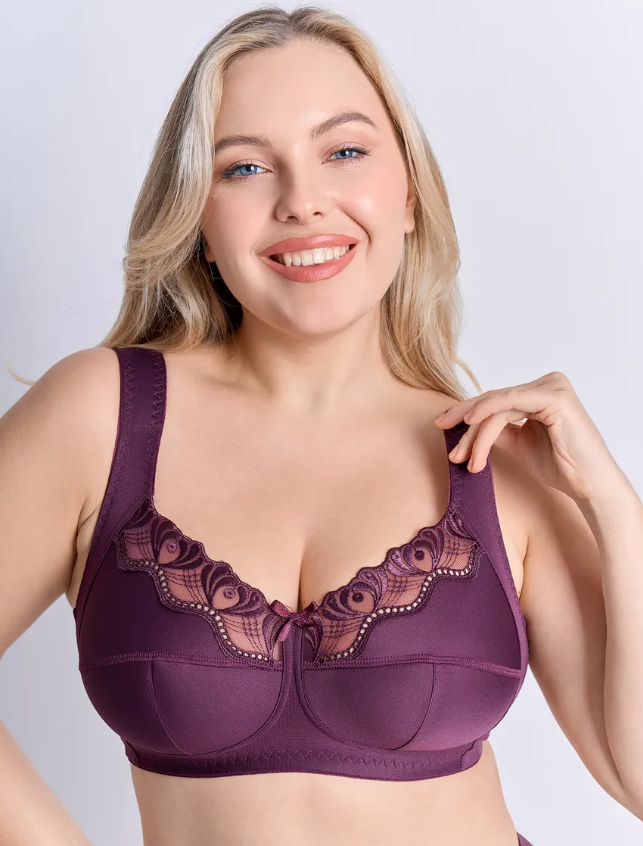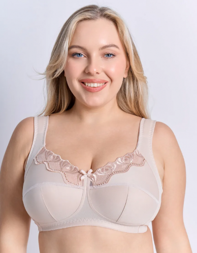 Верхняя часть украшена утончённым кружевом, которое придаёт бюстгальтеру нежный и женственный вид, но при этом остаётся гладким под одеждой. Боковые части изготовлены из эластичного полотна, что улучшает посадку на фигуре и позволяет бюстгальтеру сохранять форму даже при интенсивном использовании.