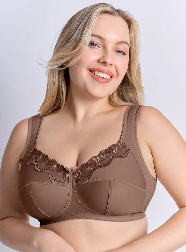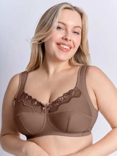 Эластичный бюстгальтер Новое Время М008 — это удачный выбор для тех, кто ищет комфортную поддержку и элегантный стиль без лишней жёсткости. Модель разработана без косточек, что делает её подходящей для ежедневного ношения, особенно для полных женщин и доступной в больших размерах. Мягкие чашки этой модели изготовлены из трикотажного материала, который не только обеспечивает приятное прилегание, но и сохраняет форму груди. Нижняя часть чашек дополнена хлопчатобумажной подкладкой, добавляющей мягкость и создающей дополнительную защиту кожи.
