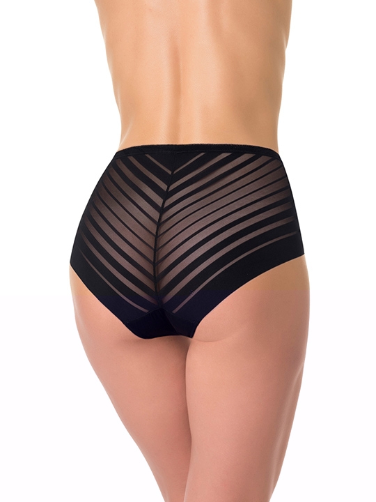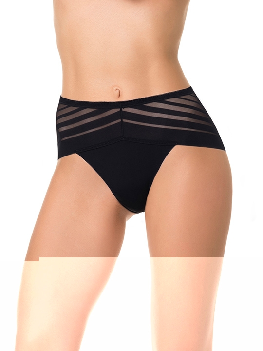 07_Молочный M, XXL Трусы с высокой линией талии. Передняя деталь выполнена из деликатной микрофибры, задняя деталь - из декоративного полотна с чередующимися полосками разной ширины. Спереди вырез ножки обработан с использованием технологии "лазерный край". По талии пришита деликатная эластичная тесьма. Хлопковая ластовица притачана к изделию потайным швом. Благодаря особенностям обработки материалов изделие абсолютно незаметно под одеждой. 1 штука в упаковке, упаковка - адресная картонная коробочка 84% нейлон, 16% спандекс