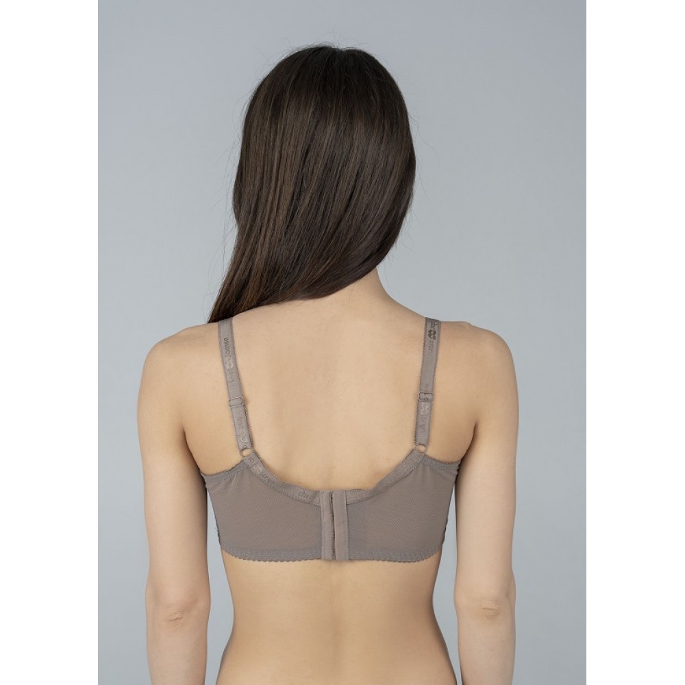 Бюстгальтер кружевной тонкий на хлопке с боковой поддержкой с сеточкой.