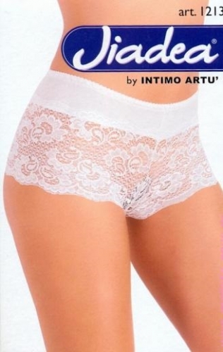 Шорты высокие, полностью из кружева, с широкой эластичной вставкой по поясу.