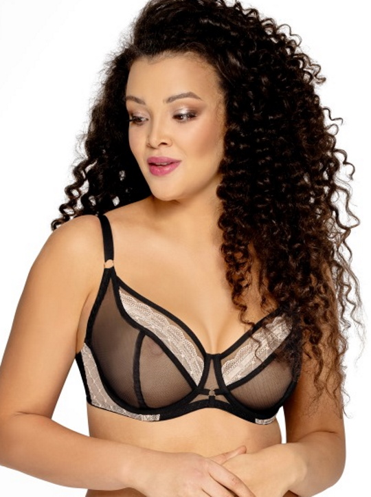 Черный 80D Бюстгальтер 1969 M выполнен на косточках, чашки шитые из чёрной сетки, верхняя часть чашки из черной сетки и кружева цвета экрю. Бретельки бюста не отстёгиваются, регулируются по длине. На спине застёжка на удлинитель, количество крючков в ряду застёжки увеличивается пропорционально размеру бюстгальтера. Бюстгальтер идеально сочетается с трусиками 1968, 1969. полиамид 88%, хлопок 8%, эластан 4%