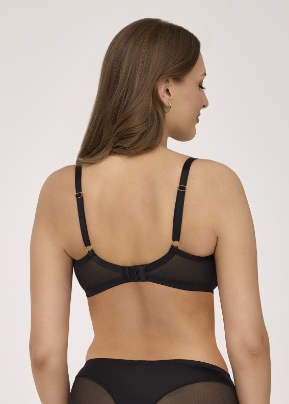 Черный 75J, 75K, 80I, 80J, 80K, 85H, 85I, 85J, 90G, 90H, 90I, 95F, 95G, 95H, 100E, 100F, 105D, 105E, 105F Бюстгальтер 2231 M в черном цвете из коллекции RITUAL выполнен на основе бюста 1824 на косточках, чашки мягкие, шитые из сетки телесного цвета, внешняя сторона чашек из эластичной черной сетки, спинка из стабилизирующей сетки, бретельки не отстёгиваются, регулируются по длине. На спине застёжка на удлинитель на 2 или 3 крючка. Фурнитура металлическая цвета желтого золота. Бюстгальтер идеально сочетается с трусиками арт. 2231. полиамид 90%, эластан 10%