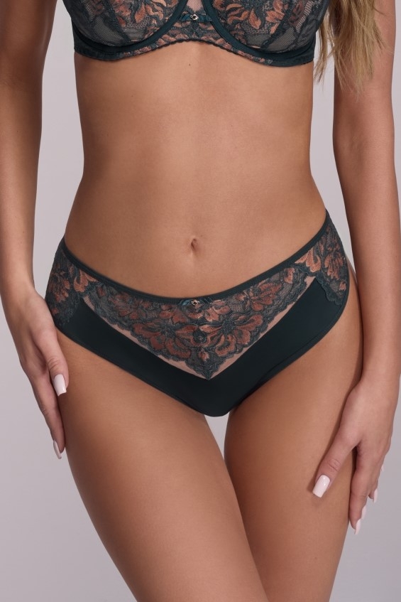 Морской S, M, L, XL, XXL, XXXL Трусики бразильяна со средней линией талии АVA 2175 выполнены в цвете Azure (лазурный) из эластичного трикотажного полотна и изумрудного кружева, украшенного золотым цветочным узором. Ластовица проложена 100% хлопком. Трусики идеально комплектуются с бюстгальтером арт. 2174, 2175. полиамид 91%, эластан 4%, хлопок 5%