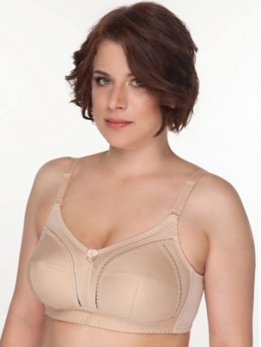 Оптовая продажа. Бюстгальтер с мягкой чашкой из неэластичного трикотажного полотна, ламинированного хлопком. Модель без каркасов. Отделка тесьмой с эффектом "мережки", декоративный бантик. Усиленные широкие бретели для разгрузки спины и плечей.