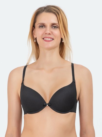 Оптовая продажа. Бюстгальтер с формованными чашками "пуш-ап", выполненный из нежной микрофибры, бретели регулируемые съёмные, декоративный элемент в виде бантика с подвеской между чашек. Размер чашки у этой модели C (указан в конце артикула).