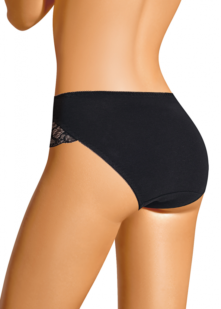 Трусы слипы женские из эластичного хлопкового полотна. По бокам вставки из кружева. Обработка краев по талии и ноге - ажурная резинка с фестоном, точечный зигзаг. По переду атласный бант.