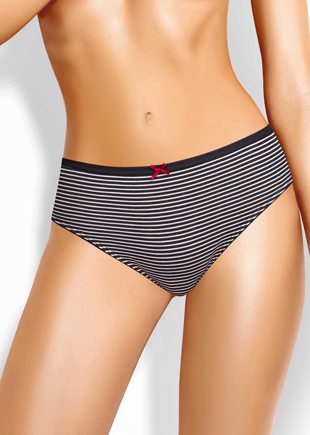 Описание: Трусы слипы женские из эластичного хлопкового полотна. Обработка краев по талии - окантовочная резинка, по ноге - полуокантовка. По переду атласный бант.