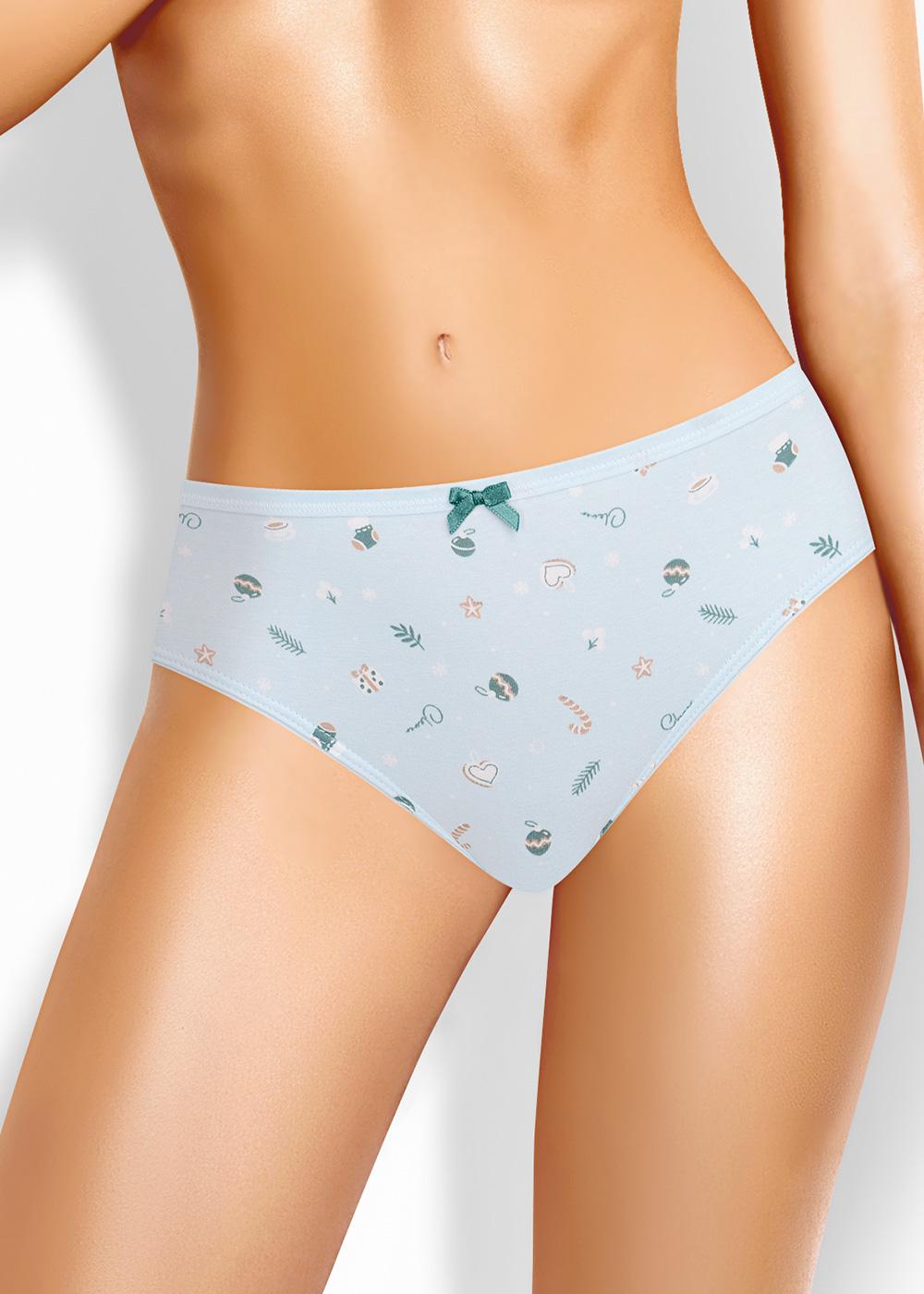 Описание: Трусы слипы женские из эластичного хлопкового полотна. Обработка краев по талии - окантовочная резинка, по ноге - полуокантовка. По переду атласный бант.