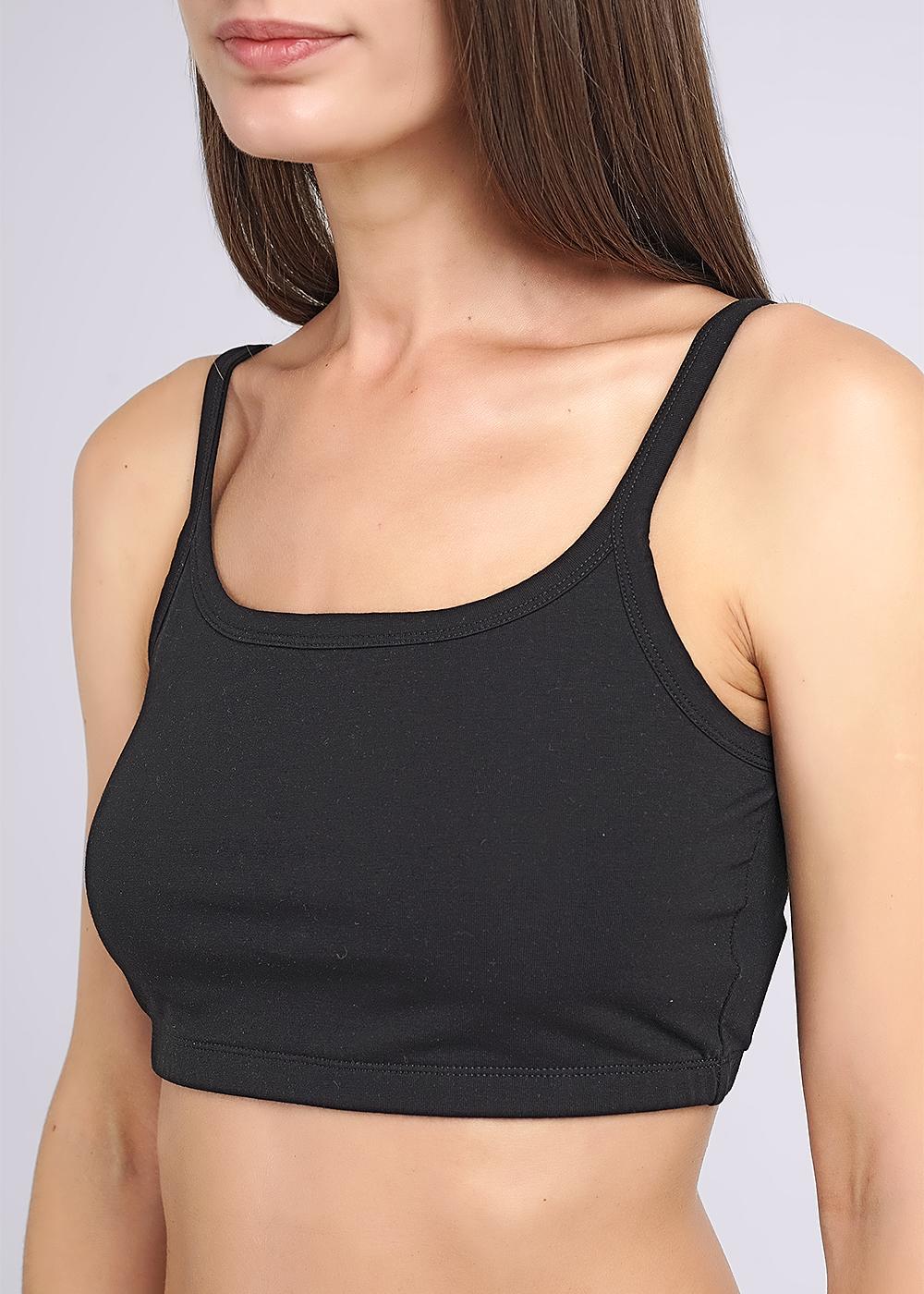 Майка-топ женская из эластичного хлопкового полотна. Двойной перед. Узкая бретель. По низу широкая резинка.
