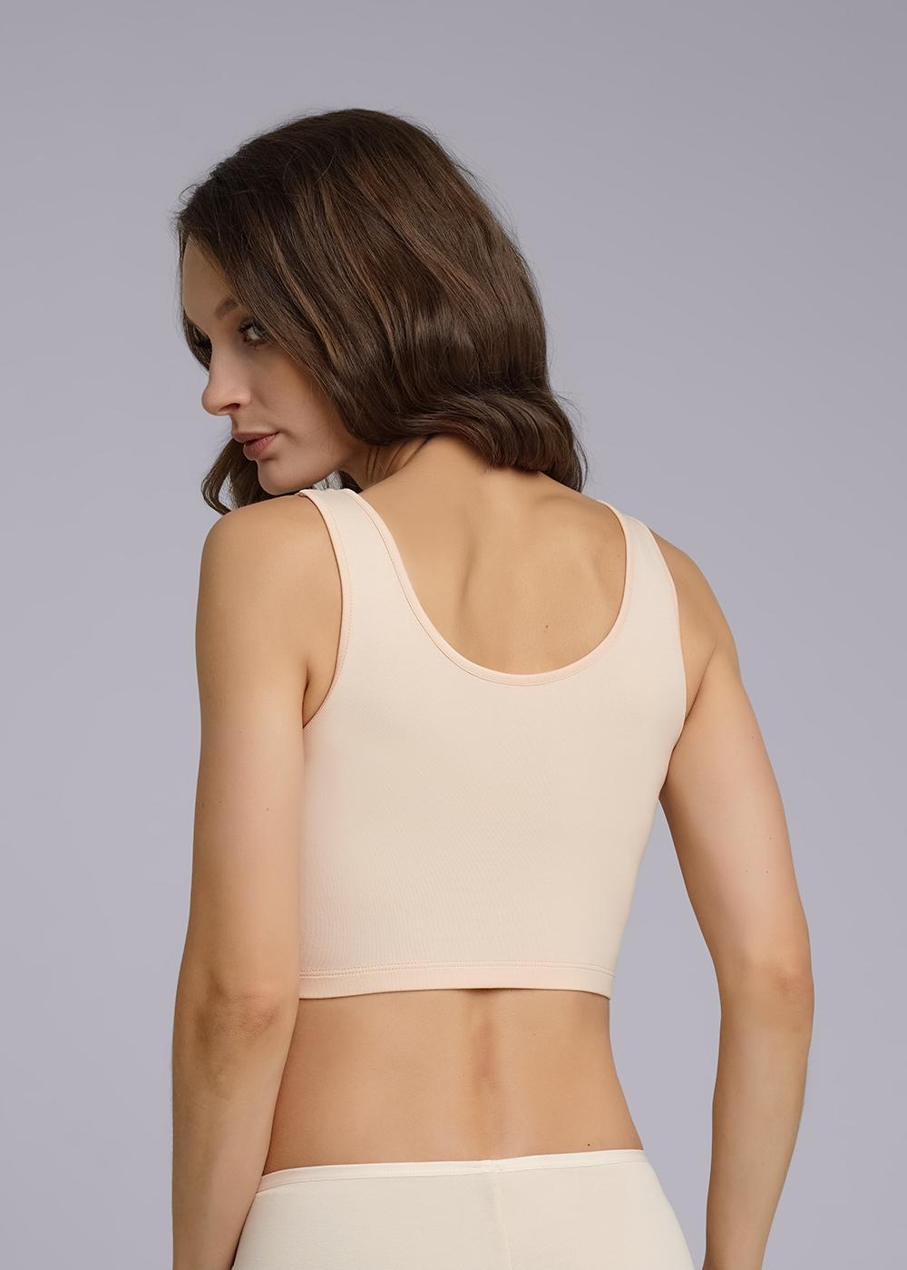 Майка-топ женская из эластичного хлопкового полотна. Двойной перед. Широкая бретель.