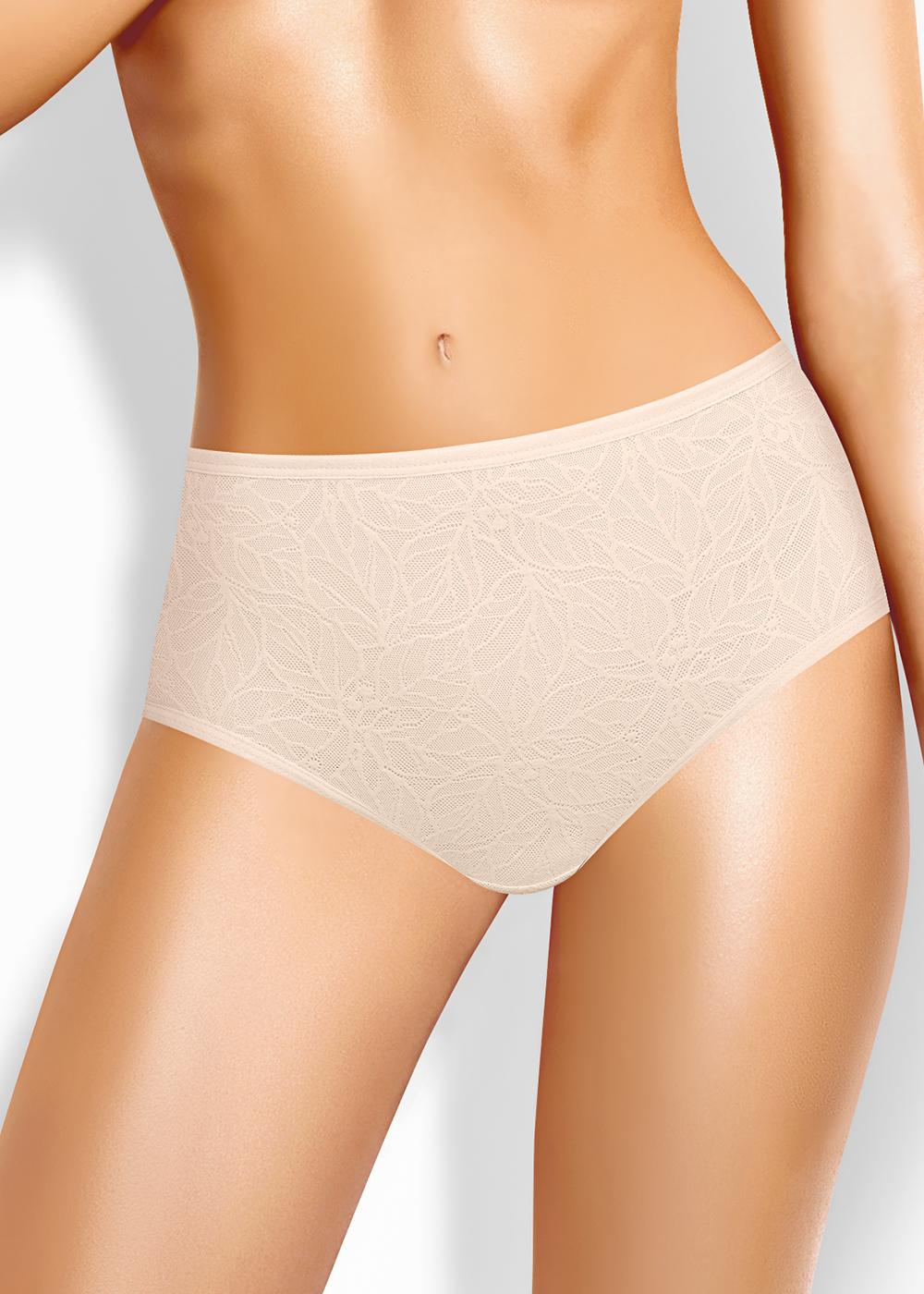 Трусы макси женские из эластичного ажурного полотна, по переду ажурное полотно дублируется хлопковым. Обработка краев по талии и ноге окантовочная резинка.