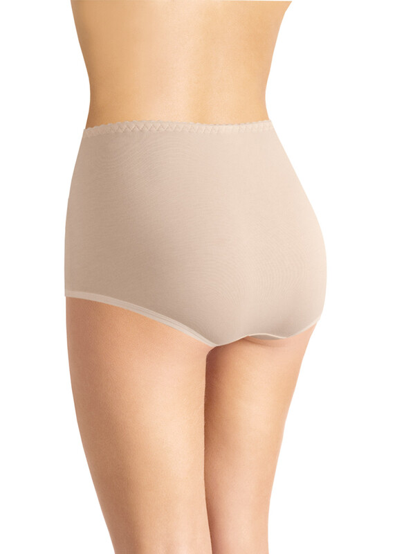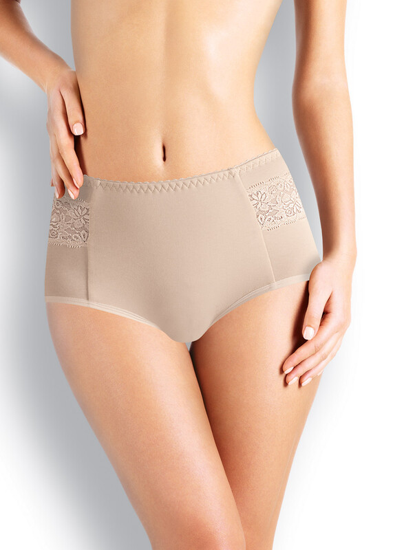 Трусы-макси утяжка женские из плотного эластичного хлопкового полотна. По переду отделка кружевом и двойной слой основного полотна. Обработка краев по талии - ажурной резинкой с фестоном, по ноге - окантовкой.