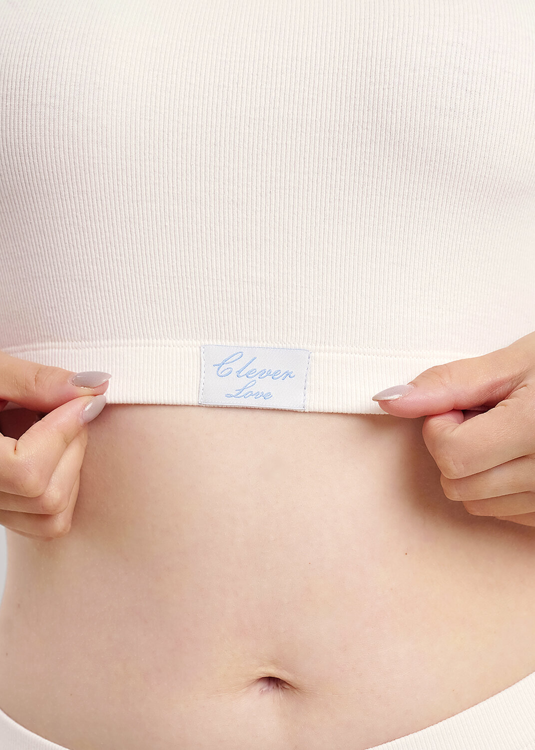 Майка топ укороченная из трикотажного полотна кашкорсе лапша с эластаном. Средняя ширина бретели. Округлый вырез горловины. По горловине, пройме окантовка. По низу изделия внутренняя резинка, по центру жаккардовая нашивка.