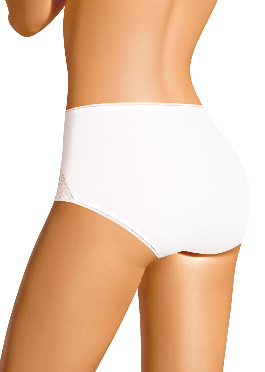 Трусы макси женские из эластичного хлопкового полотна. По переду рез с кружевными вставками. Обработка краев по талии и ноге ажурная резинка (точечный зигзаг). По переду атласный бант.