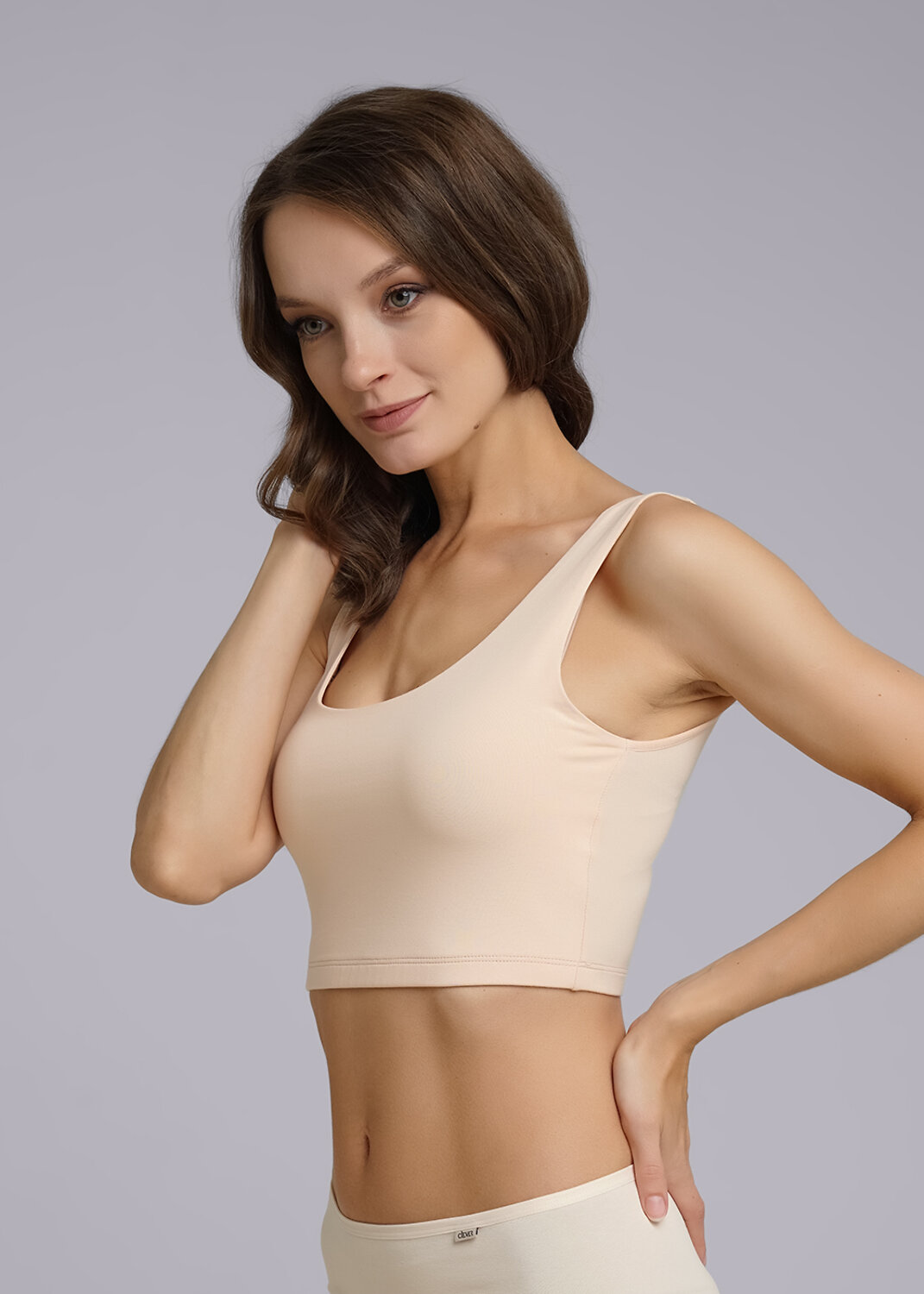 Майка-топ женская из эластичного хлопкового полотна. Двойной перед. Широкая бретель.