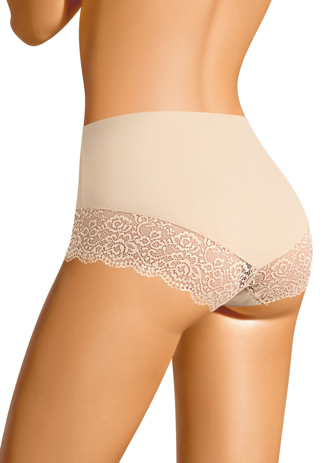 Бесшовные трусы макси комфортной посадки. По ножке настрочено широкое кружево.