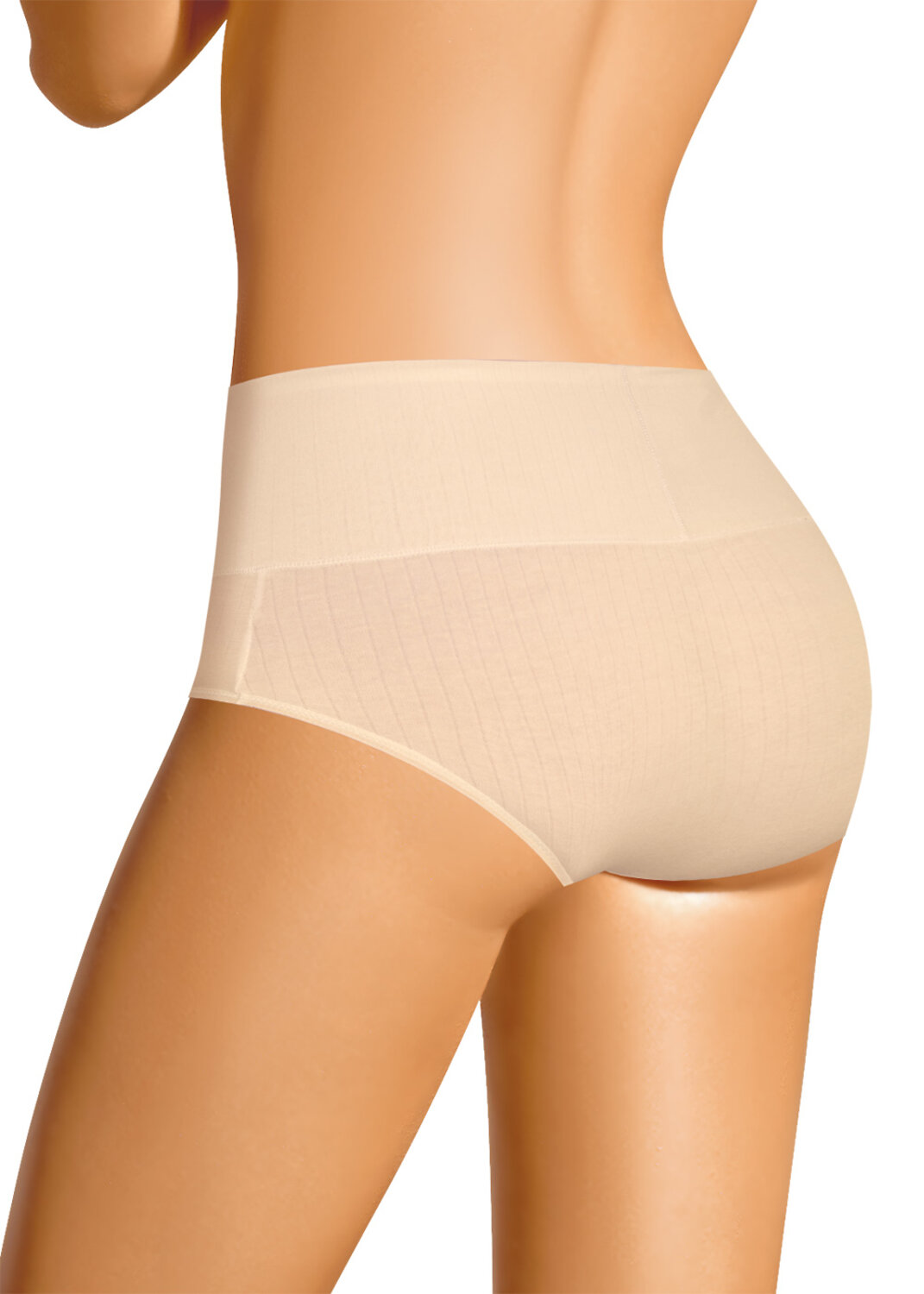 Трусы макси женские из эластичного хлопкового полотна. По талии широкий пояс с внутренней резинкой, обработка зубы. По ноге узкая резинка с застилом (сверху), на спинке средний шов по поясу.