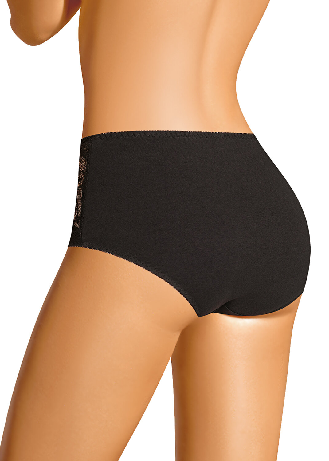 Трусы макси женские из эластичного хлопкового полотна. По переду кружевные вставки. Обработка краев по талии и ноге - ажурная резинка с фестоном, точечный зигзаг. По переду атласный бант.