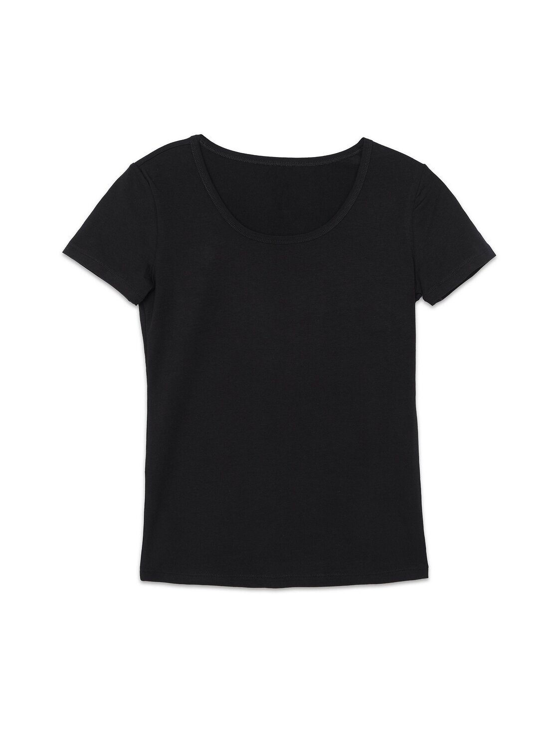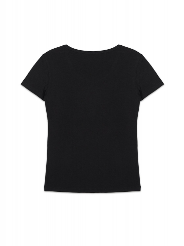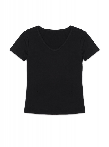 Фуфайка женская из эластичного трикотажного полотна с коротким втачным рукавом. Горловина круглая обработана окантовкой из основного полотна.