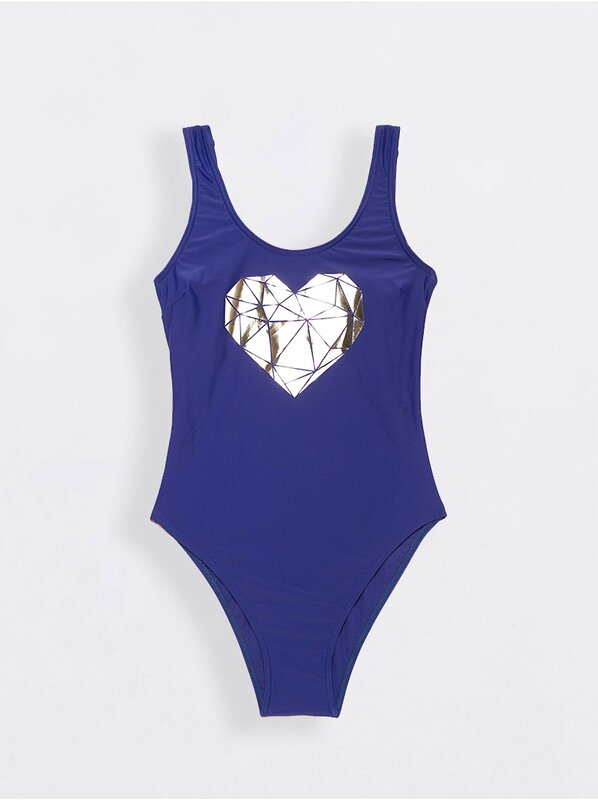 Слитный классический купальник с мягкими чашками LOVE оценят девушки, которым нравится комфорт и удобство. Яркие акценты в пляжный образ добавят насыщенные цвета и принт в форме сердечка, нанесенный методом металлической печати.