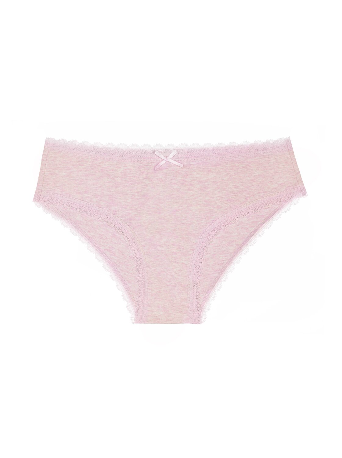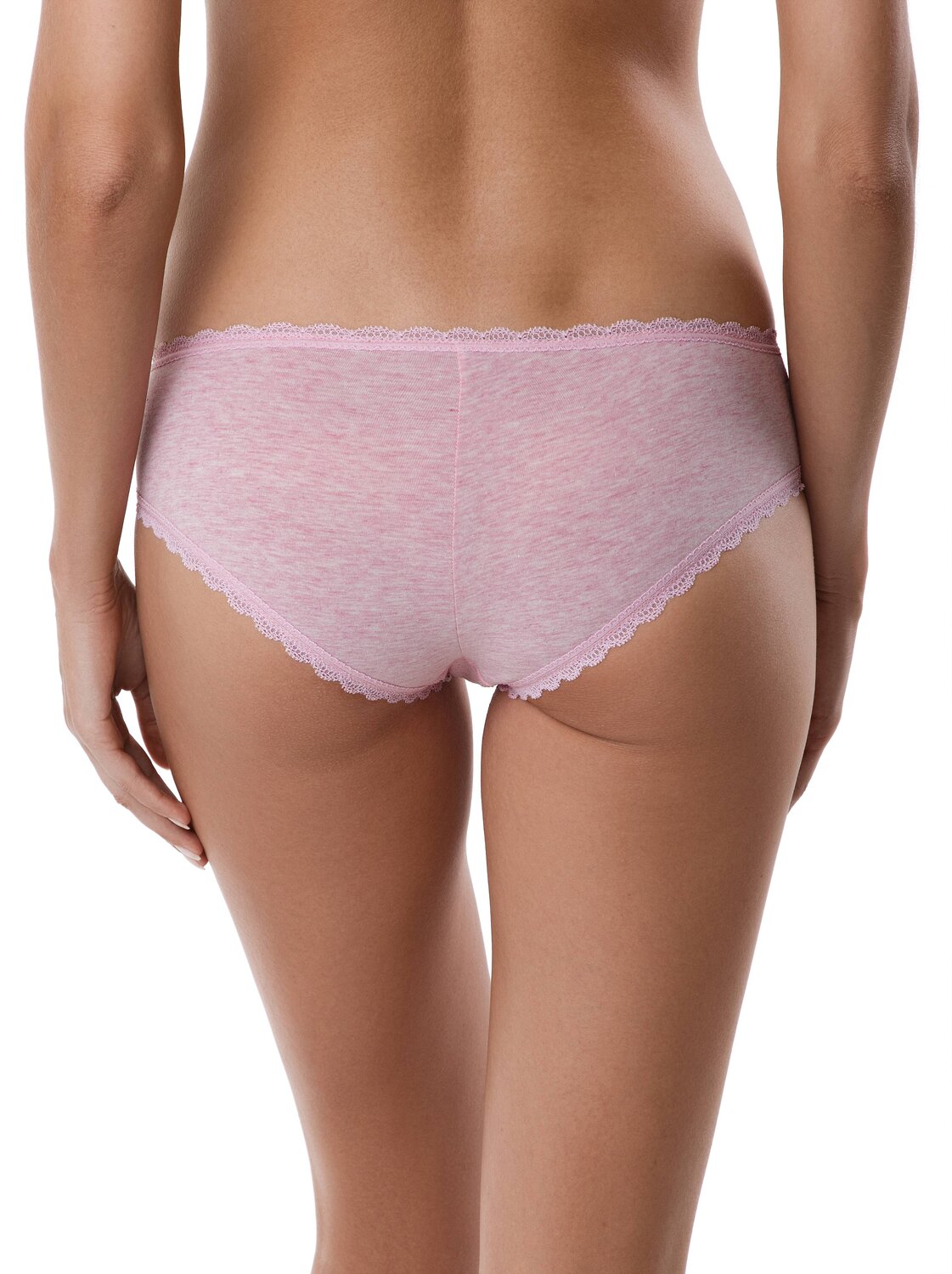Трусики украшены эластичным кружевом, которое не оставляет следов на теле и бережно соприкасается с кожей. Модель дополнена по центру аккуратным бантиком в цвет кружева.