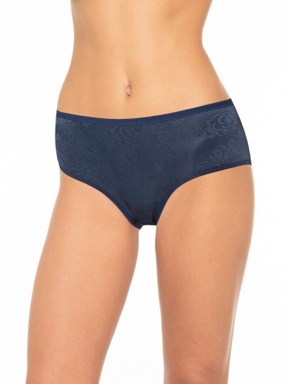 Оптовая продажа. Трусики слипы женские темно-синего цвета, однотонные, из деликатного хлопкового полотна с добавлением спандекса, повышающий прочность и качество одежды, обладающий высокой гигроскопичностью, легкостью, не мнется. Ткань гладкая, приятная на ощупь, с небольшим блеском, не мнется, позволяя сохранять привлекательность модели. Передняя деталь из жаккардового полотна с цветочным рисунком. Гигиеничная хлопковая ластовица позволяет избежать трения и раздражения кожи. Удобная и комфортная модель для повседневного белья.