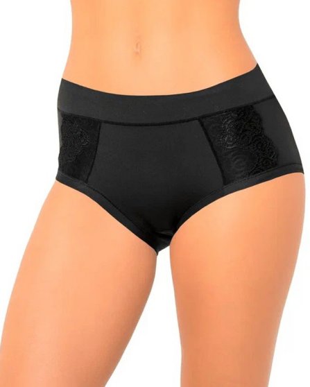 Оптовая продажа. Трусики слипы женские черного цвета, однотонные, из мягкого бамбукового полотна с добавлением эластана, повышающий прочность и качество одежды, создавая идеальное облегание фигуры. Имеют завышенную посадку, мягкую и эластичную резинку по талии, удерживающие трусы во время носки. Декорированы кружевными вставками с цветочным рисунком по бокам придавая женственности. Вставка посередине передней детали дублирована основным полотном, что дает небольшой корректирующий эффект. Гигиеничная хлопковая ластовица позволяет избежать раздражения кожи.