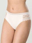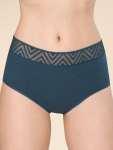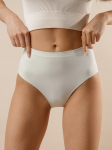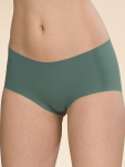Женские трусы от торговой марки Индефини. Трусы-слипы светлого цвета с высокой посадкой, изготовлены из мягкой микрофибры в тонкий рубчик без боковых швов, дополнены гигиенической хлопковой ластовицей, вырезы для ног обработаны плоским швом вподгибку с резинкой, широкий пояс на резинке плотно фиксирует на теле. Зеленый