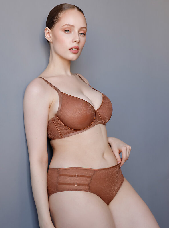 Комплект нижнего белья (Арт.318000-2132WXY) от торговой марки Индефини. В комплекте бюстгальтер и трусы-слипы. Бюстгальтер бежевого цвета, из полиамида, с косточками, лямки регулируются. Трусы-слипы бежевого цвета, из полиамида, на мягкой резинке, средней посадки.