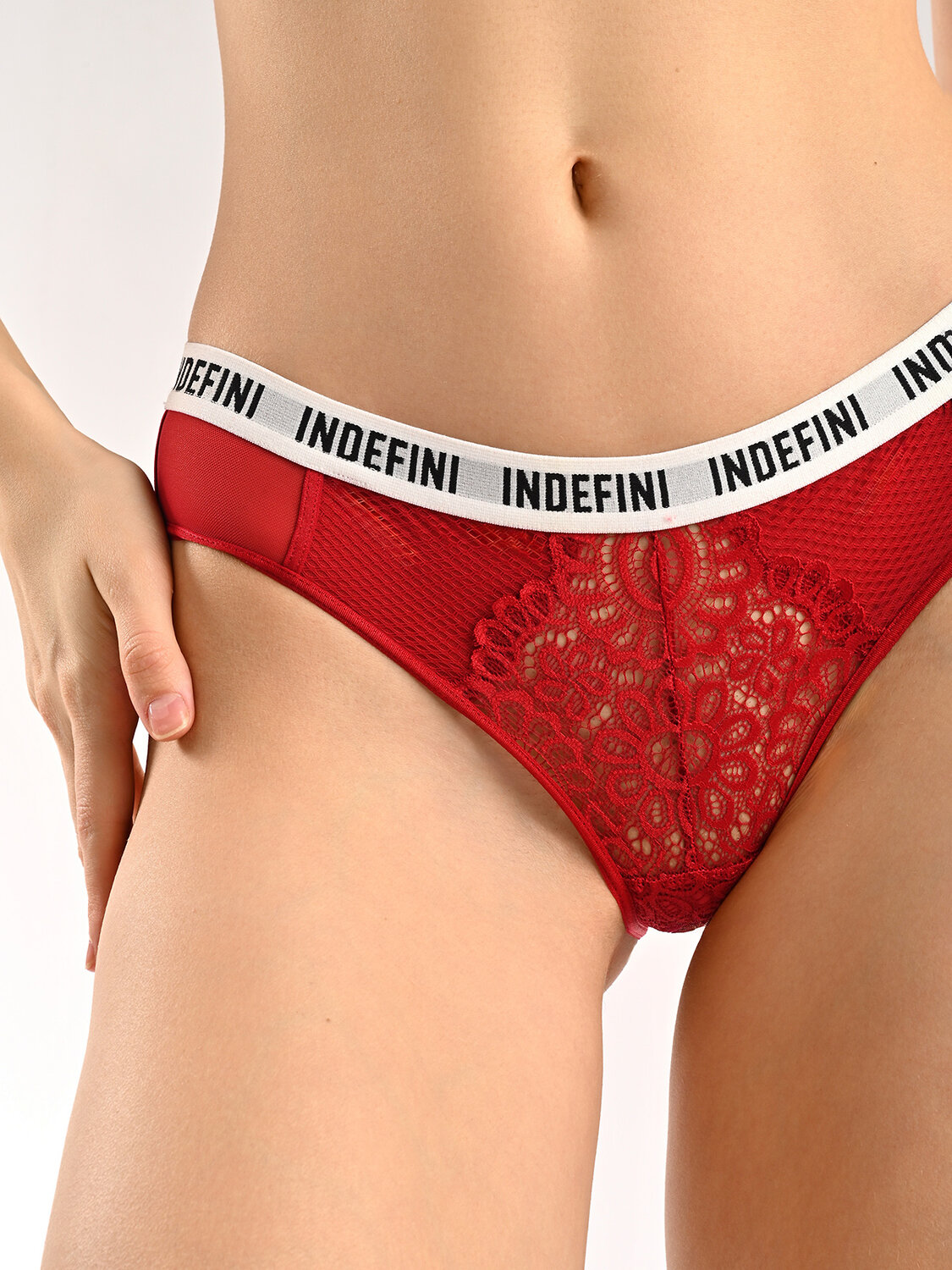 Женские кружевные трусы-слипы Indefini — воплощение элегантности и комфорта в каждой детали. Модель выполнена в насыщенном красном цвете и украшена кружевным узором, который придает изделию особый шарм.