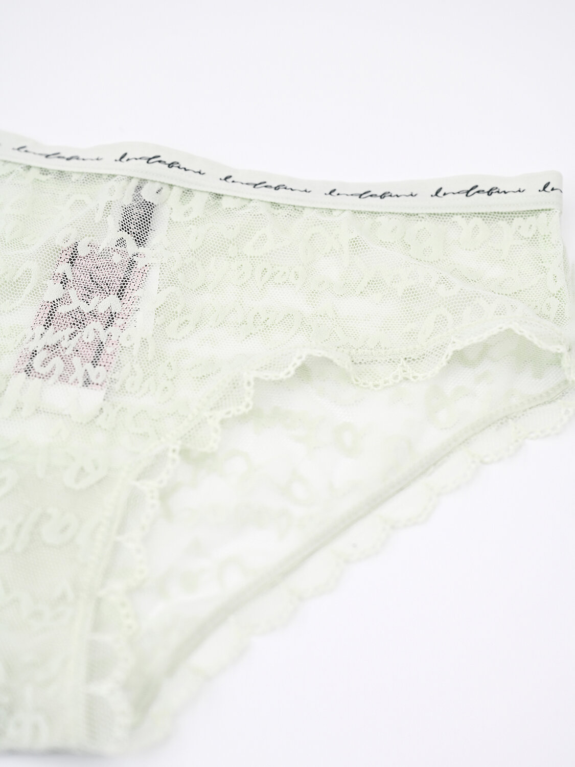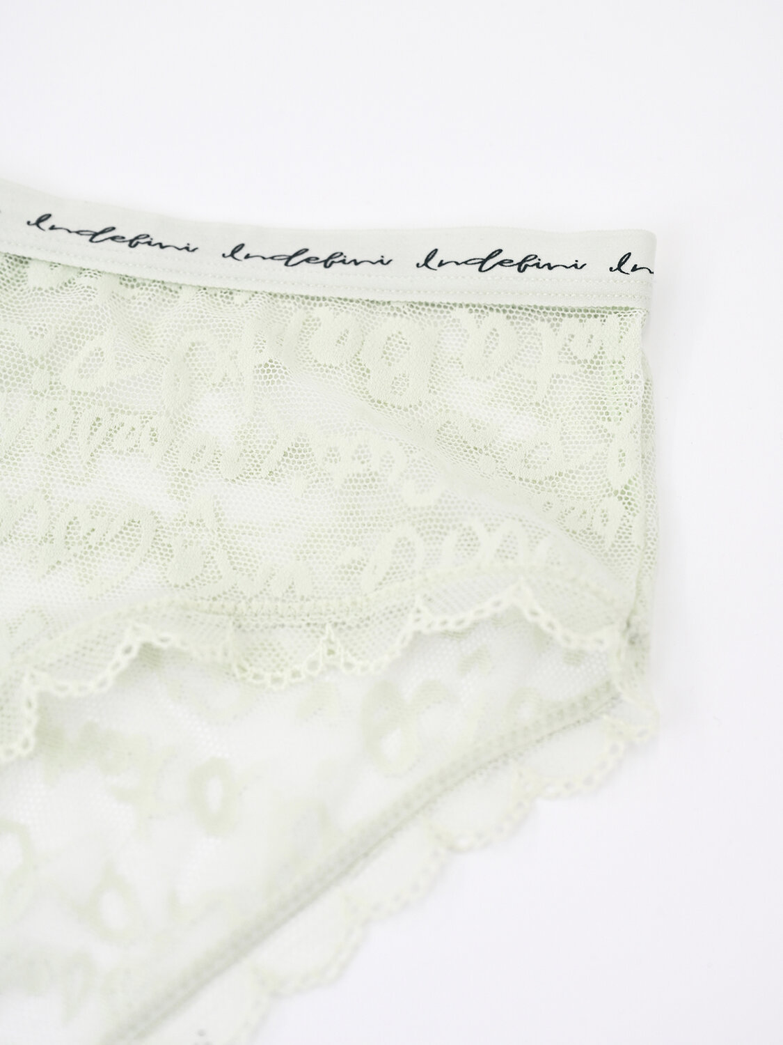 Модель средней посадки держится на талии мягкой резинкой с повторяющимся логотипом бренда Indefini.