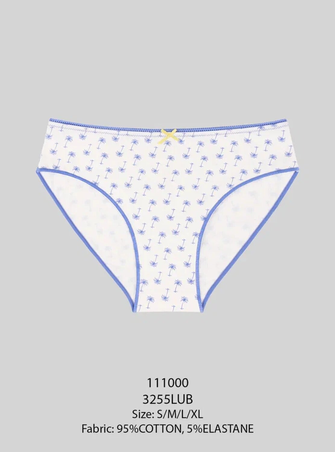 Сиреневая резинка и веселый принт с пальмами добавляют яркий акцент.